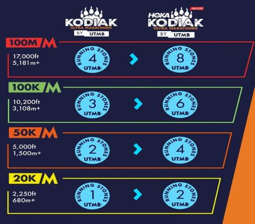 在为期三天的赛程中将进行100英里、100 公里、50 公里、20 公里和 10 公里五个组别的比赛,前三个组别的男女前十名选手和所有距离的年龄组冠军都将直接获得参加 2026 年UTMB 世界系列赛总决赛的资格,而前四个组别的所有完赛选手都将获颁双倍跑马石,从而大大增加2026年总决赛参赛的中签几率。