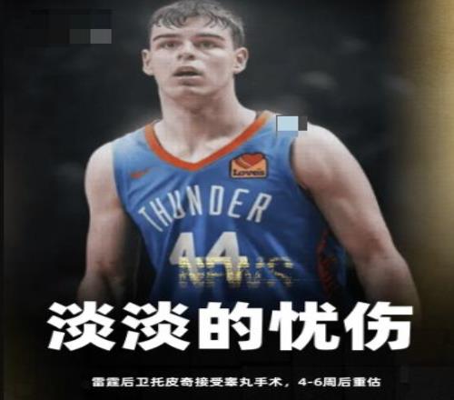 美记者爆料,雷霆后卫托皮奇接受了睾丸手术,大约4-6周后重新评估。