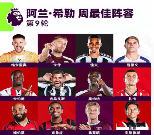 雷速体育10月28日报道宣称 英超第9轮上周末结束,阿兰·希勒评选本轮最佳11人阵容,曼联球员姆伯莫双响入选,卡什、扎卡在列。